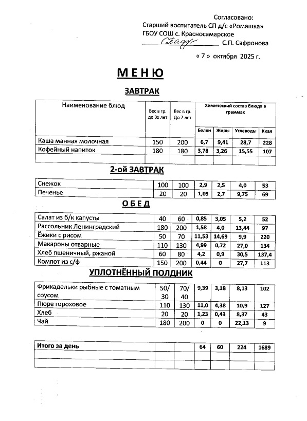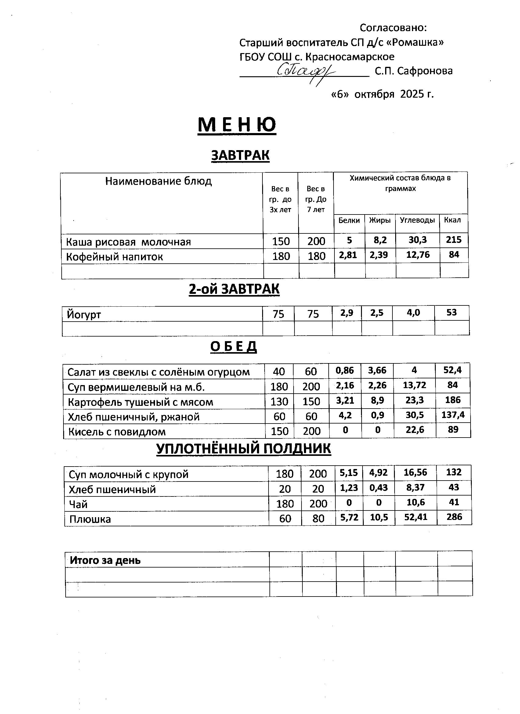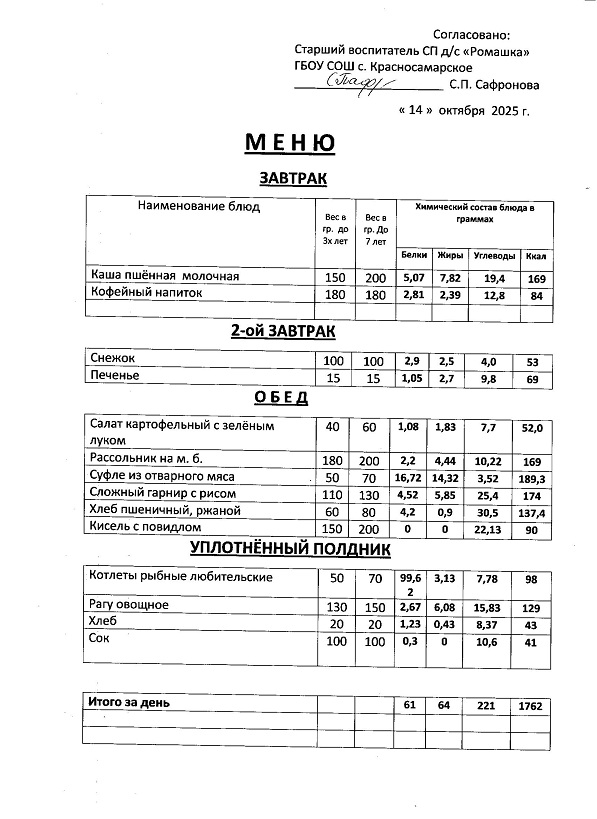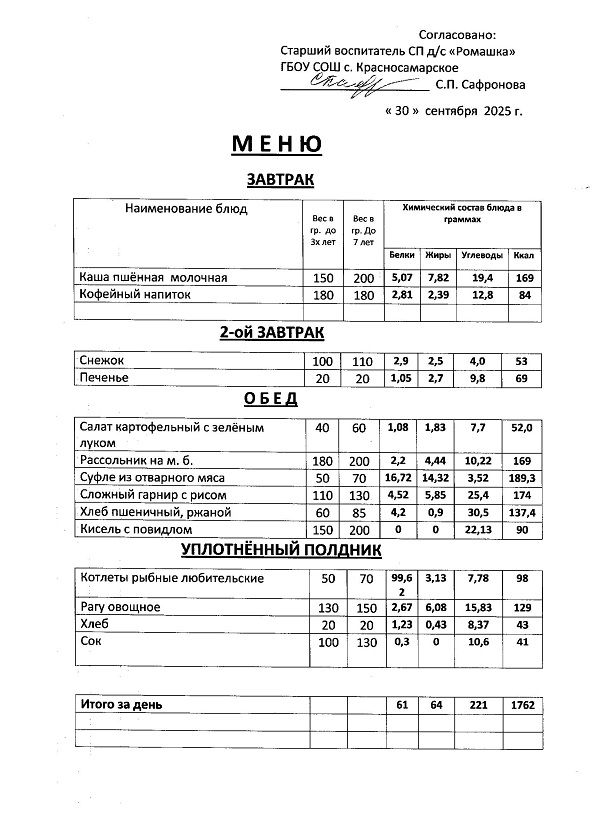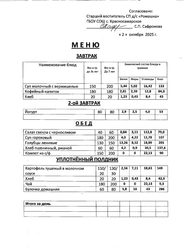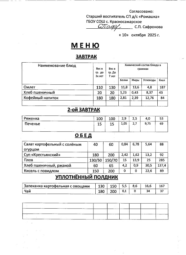 Примерное 10-дневное меню на осенне-зимний период. Возрастная категория от 1,5 до 7 лет