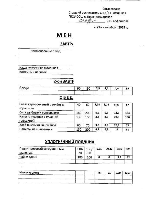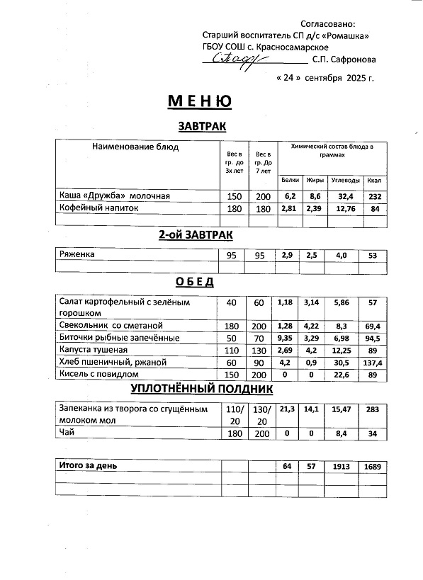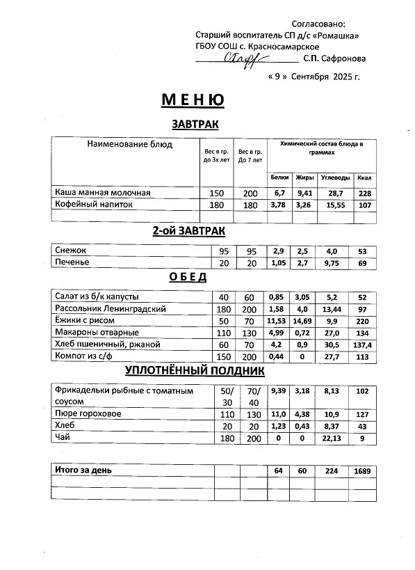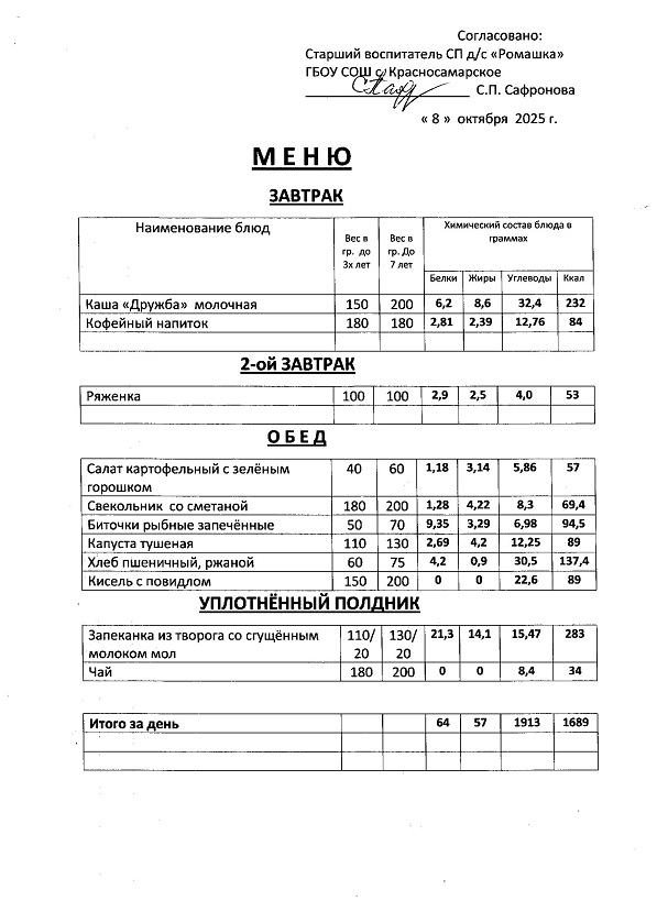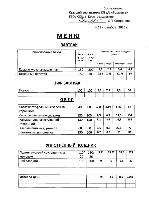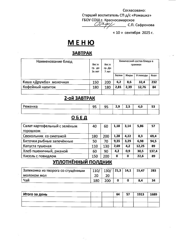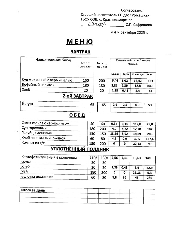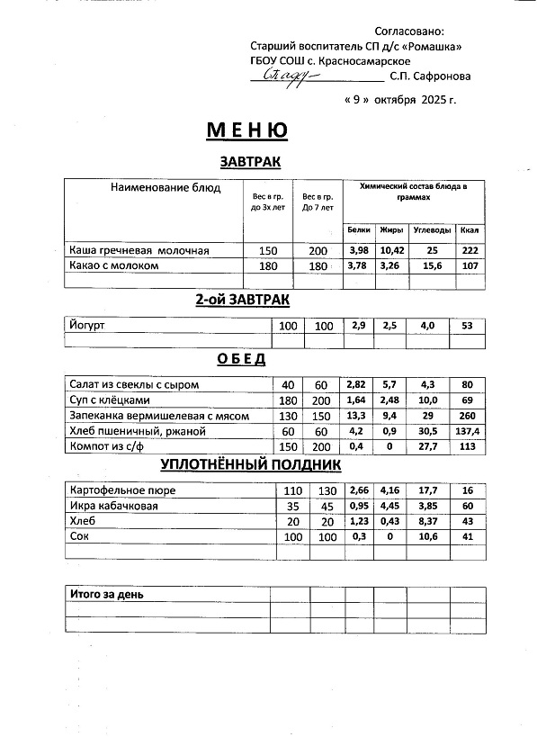 Примерное 10-дневное меню на осенне-зимний период. Возрастная категория от 1,5 до 7 лет
